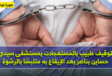 توقيف طبيب بالمستعجلات بمستشفى سيدي حساين بناصر بعد الإيقاع به متلبسًا بالرشوة