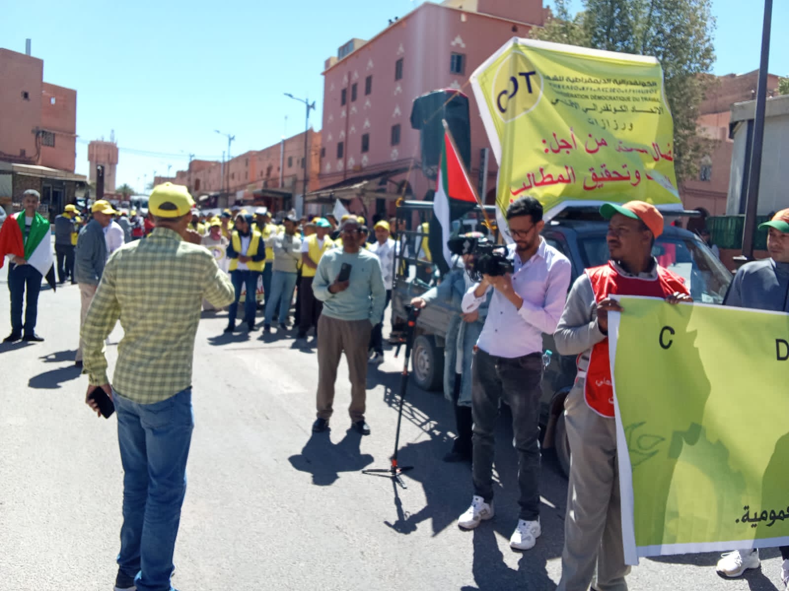 خلدت الكونفدرالية الديمقراطية للشغل اليوم الأربعاء بمدينة ورزازات العيد الأممي للطبقة الشغيلة بتنظيم مهرجان خطابي و مسيرة احتجاجية جابت اهم شوارع و احياء المدينة، و هو ما شكل مناسبة لتعبئة مناضلاتها و مناضليها و عموم المواطنين لمواصلة العمل من أجل تحسين القدرة الشرائية للطبقة الشغيلة و تحصين مكتسباتها وتحقيق مطالب اخرى ، بالاضافة الى التعبير على التضامن مع الشعب الفلسطيني في محنته مع الاحتلال الإسرائيلي .