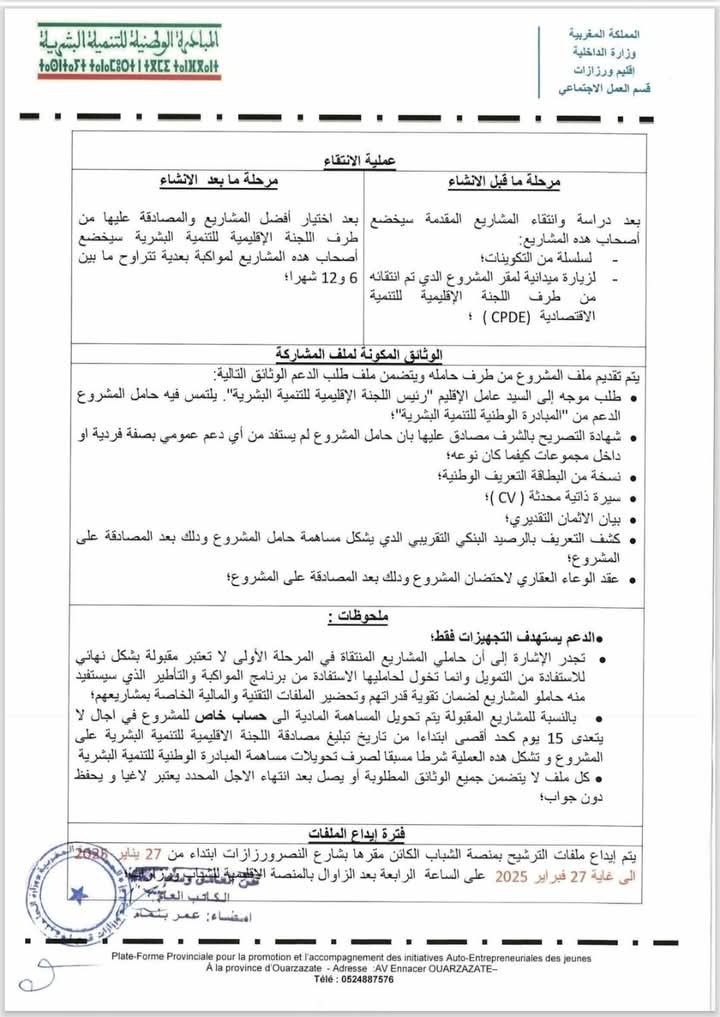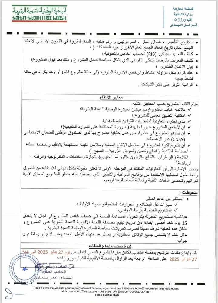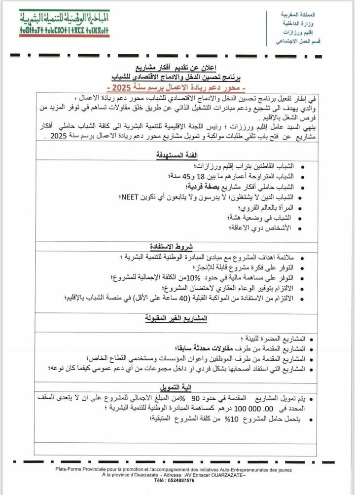 المبادرة الوطنية للتنمية البشرية بورزازات تعلن عن تلقي طلبات دعم مشاريع الشباب و التعاونيات النسائية