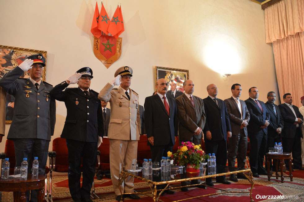 في غمرة احتفالات الشعب المغربي بذكرى ثورة الملك والشعب التي تصادف 20 غشت من كل سنة، شهدت قاعة قصر المؤتمرات بورزازات مساء أمس الخميس ، مراسيم الانصات الى النص الخطابي الملكي السامي تخليدا للذكرى الثانية والستون لثورة الملك و الشعب ، حيث ترأسه السيد صالح بن يطو عامل اقليم ورزازات الى جانب السلطات الامنية و المدنية والعسكرية والقضائية ، ورؤساء المجالس المنتخبة وأعضاء البرلمان ، ورؤساء المصالح الخارجية، وحضره كذلك مجموعة من الفعاليات الجمعوية ، بالإضافة لبعض أفراد أسر المقاومين بورزازات وأرامل الشهداء الذين دأبوا على الحضور كل سنة في مثل هذا اليوم.