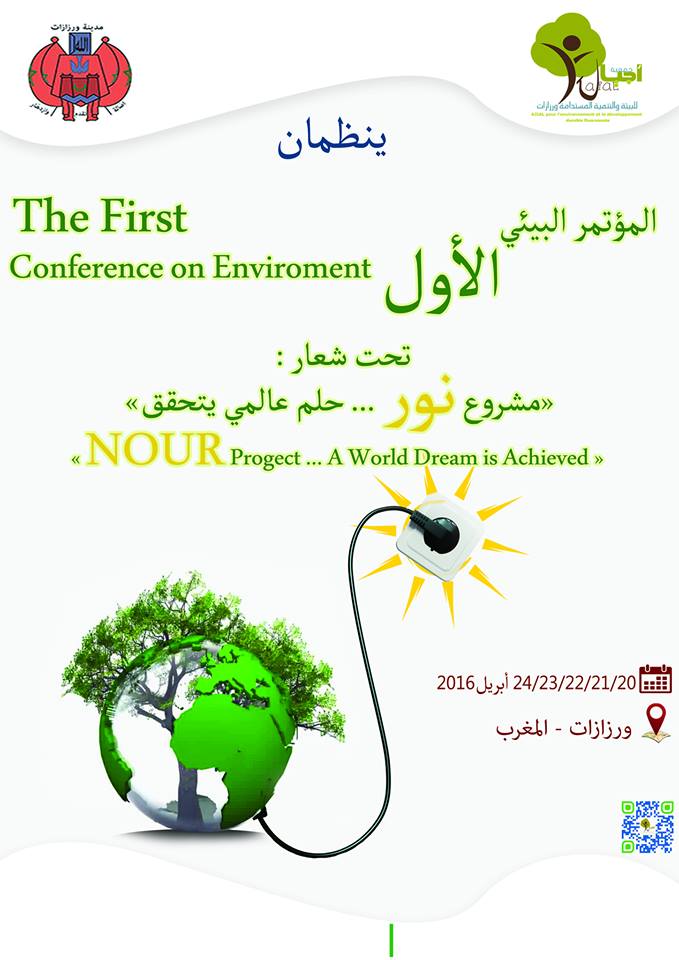 تخليدا لليوم العالمي للأرض وترسيخا لمفهوم الثقافة البيئية تنظم جمعية أجيال للبيئة والتنمية المستدامة بشراكة مع بلدية ورزازات المؤتمر البيئي الأول بالمدينة تحت شعار: “مشروع نور… حلم عالمي يتحقق” وسيمتد المؤتمر من 20 إلى 24 أبريل 2016 بورزازات.
