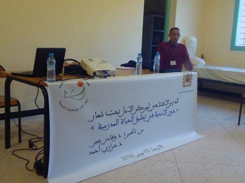 وقد تميز النشاط بتقديم عرضين تمحور الأول منهما حول مفهوم الأندية التربوية ودورها في تفعيل الحياة المدرسية قدمه الأستاذ عمر وهابي (الحارس العام للخارجية بالمؤسسة) وخلص فيه إلى كون الأندية تعد بمثابة مؤسسة تساهم بشكل كبير في التكوين الموازي للمتعلمين من خلال حفز ميولا تهم الايجابية وصقل مواهبهم كما تساعدهم في اندماجهم في المحيط الخارجي إن على المدى المتوسط أو البعيد.