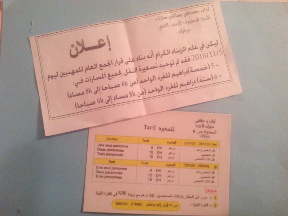 في خطوة مفاجئة قرر أرباب سيارات الأجرة (الصغيرة) الزيادة في تسعيرات سيارات الأجرة الصغيرة بمدينة ورزازات و بطريقتهم الخاصة دون إعلان مسبق من أي جهة .