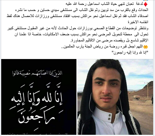 قصة وفاة الشاب أشعلت مواقع التواصل الإجتماعي بإقليم ورزازات، حيث إستنكر روادها الوضع الصحي بالمستشفى الإقليمي بورزازات و الذي إعتبروه “محطة عبور نحو مراكش”، حيث ليس من المقعول إرسال مثل هذه الحالات خاصة المصابين بلدغات الأفاعي و العقارب إلى مراكش قصد العلاج،