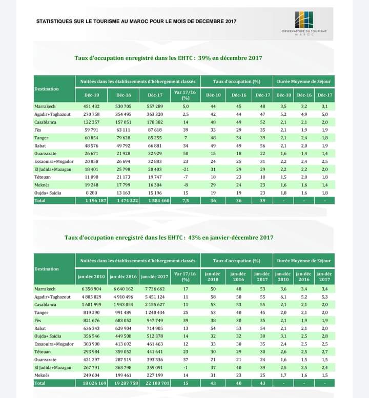 ففي سنة 2017 سجلت وجهة ورزازات ثاني أعلى نسبة نمو لليالي المبيت بالمغرب بزيادة قدرها زائد 37+ % وهو ما يمثل أكثر من ضعف معدل النمو المسجل على المستوى الوطني.( 15%).