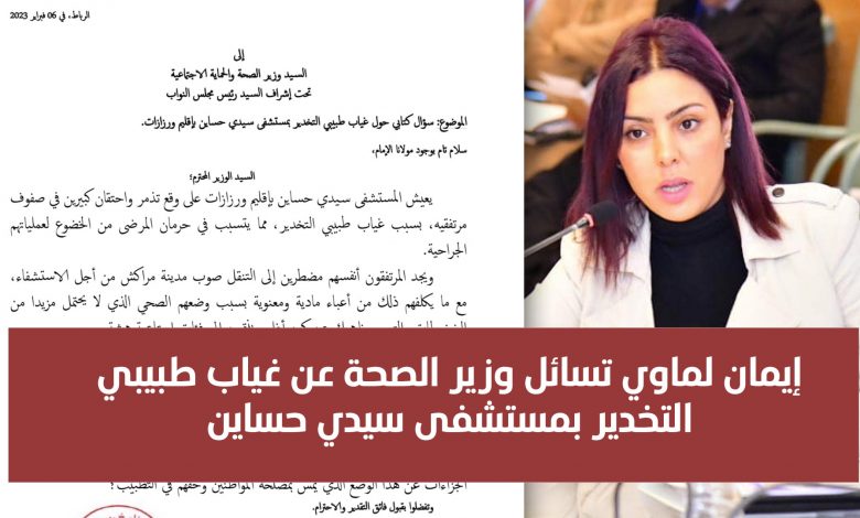 إيمان لماوي تسائل وزير الصحة عن غياب طبيبي التخدير بمستشفى سيدي حساين